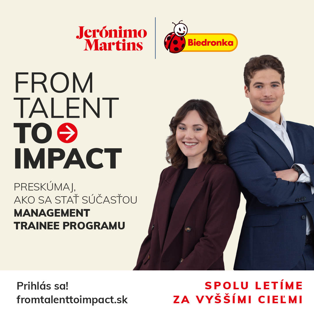 Záujemkyne a záujemcovia, ktorí spĺňajú podmienky, môžu posielať svoje prihlášky do exkluzívneho programu Jerónimo Martins: From Talent to Impact prostredníctvom platformy www.fromtalenttoimpact.sk až do konca apríla 2026.